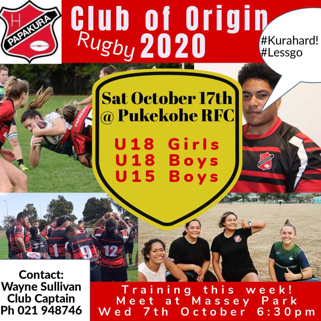 The call is going out to U18 girls and U18/U15 boys to represent Papakura at the 2020 Club of Origin on 17th October at Pukekohe RFC.